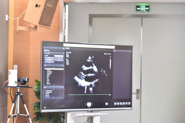 5G遠(yuǎn)程會診現(xiàn)場,西安國際醫(yī)學(xué)中心心內(nèi)科張衛(wèi)澤主任、超聲科陳姍姍主任打開4K高清顯示器,屏幕上立刻出現(xiàn)了商洛國際醫(yī)學(xué)中心的B超畫面,一位醫(yī)生正在為患者做心臟B超,隨著探頭的轉(zhuǎn)動,超聲機(jī)器上的畫面清晰可見,雖然兩家醫(yī)院相距一百多公里,但畫面流暢,沒一點(diǎn)拖沓。